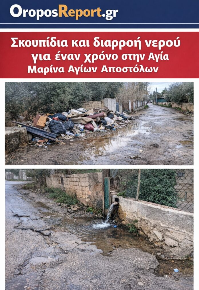 Έντονη αγανάκτηση εκφράζουν κάτοικοι της περιοχής Αγία Μαρίνα στους Αγίους Αποστόλους Ωρωπού, καταγγέλλοντας εικόνες πλήρους εγκατάλειψης μετά τις πρόσφατες καταστροφές που προκάλεσαν οι πλημμύρες.