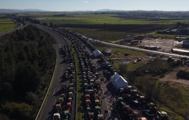 Η αγροτική κοινότητα συνεχίζει τις δυναμικές της κινητοποιήσεις, με τους αγρότες του μπλόκου της Νίκαιας να έχουν προχωρήσει σε αποκλεισμό της παλαιάς εθνικής οδού στο ύψος του Πλατυκάμπου. Ο δρόμος έχει μετατραπεί σε ένα εντυπωσιακό «ποτάμι» από τρακτέρ, αναδεικνύοντας την αποφασιστικότητα των αγροτών να διεκδικήσουν τα αιτήματά τους. Η αεροφωτογραφία από drone καταγράφει το μέγεθος της συγκέντρωσης, προσφέροντας μια μοναδική οπτική γωνία της διαμαρτυρίας.