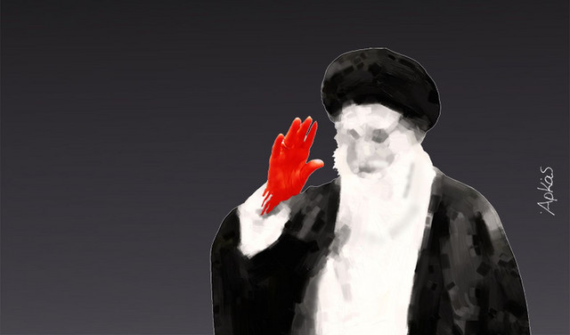 Το σημερινό σκίτσο «Καλημέρα», που μοιράστηκε ο Αρκάς με τους διαδικτυακούς του φίλους, είναι αφιερωμένο στις δραματικές εξελίξεις στην πολυτάραχη χώρα. Στο ισχυρό αυτό έργο, διακρίνεται η επιβλητική μορφή του ανώτατου θρησκευτικού ηγέτη του Ιράν, αγιατολάχ Αλί Χαμενεΐ, του οποίου τα χέρια είναι βαμμένα με αίμα, αναδεικνύοντας τη βίαιη καταστολή των διαδηλώσεων.
