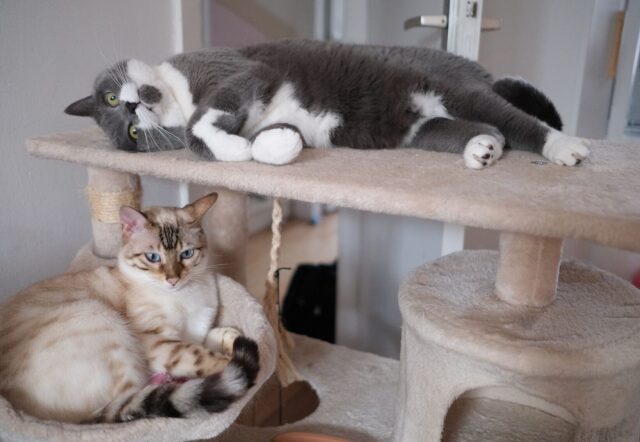 • Έλλειψη προσωπικού χώρου: Οι γάτες χρειάζονται σημεία απόσυρσης και ασφάλειας. Η απουσία ύψους, όπως ραφιών ή κρυψώνων, στερεί τη δυνατότητα αποφυγής συγκρούσεων και τη διατήρηση της προσωπικής τους ζώνης.