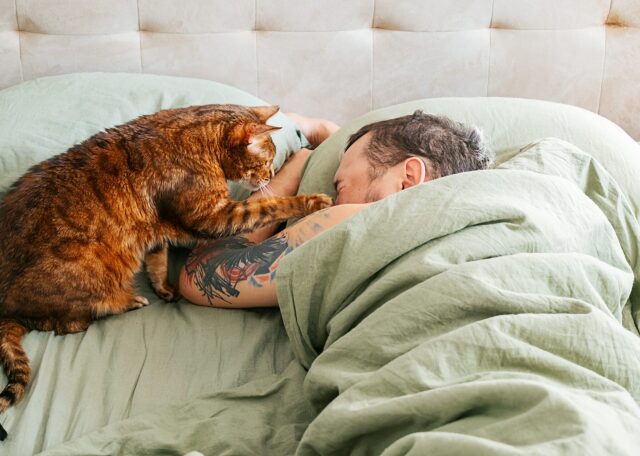 • Ένδειξη εμπιστοσύνης και ασφάλειας: Η γάτα, αγγίζοντας το πρόσωπο, εκφράζει συχνά βαθιά εμπιστοσύνη προς τον άνθρωπο, καθώς ο ίδιος βρίσκεται σε μια ευάλωτη κατάσταση, όπως ο ύπνος. Αυτή η πράξη υποδηλώνει την απουσία απειλής και την πλήρη αίσθηση ασφάλειας στο περιβάλλον.