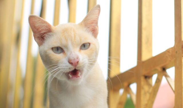 • Το σφύριγμα/φύσημα: Αυτή η επιθετική ηχητική εκδήλωση αποτελεί σαφή προειδοποίηση και ένδειξη φόβου, πόνου ή απειλής. Η γάτα επιδιώκει να αποτρέψει έναν αντίπαλο ή μια απειλή, εκδηλώνοντας την ετοιμότητά της για άμυνα. Η συνοδευτική γλώσσα του σώματος (ανασηκωμένος όγκος, πεταγμένα αυτιά) ενισχύει το μήνυμα.