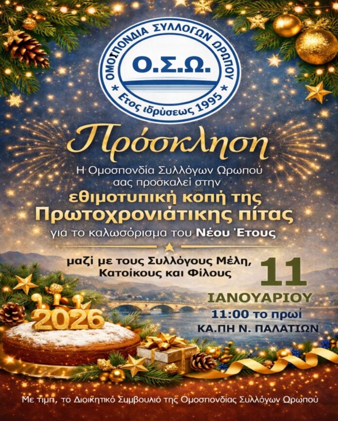 Κοπή Πρωτοχρονιάτικης Πίτας της Ομοσπονδίας Συλλόγων Ωρωπού