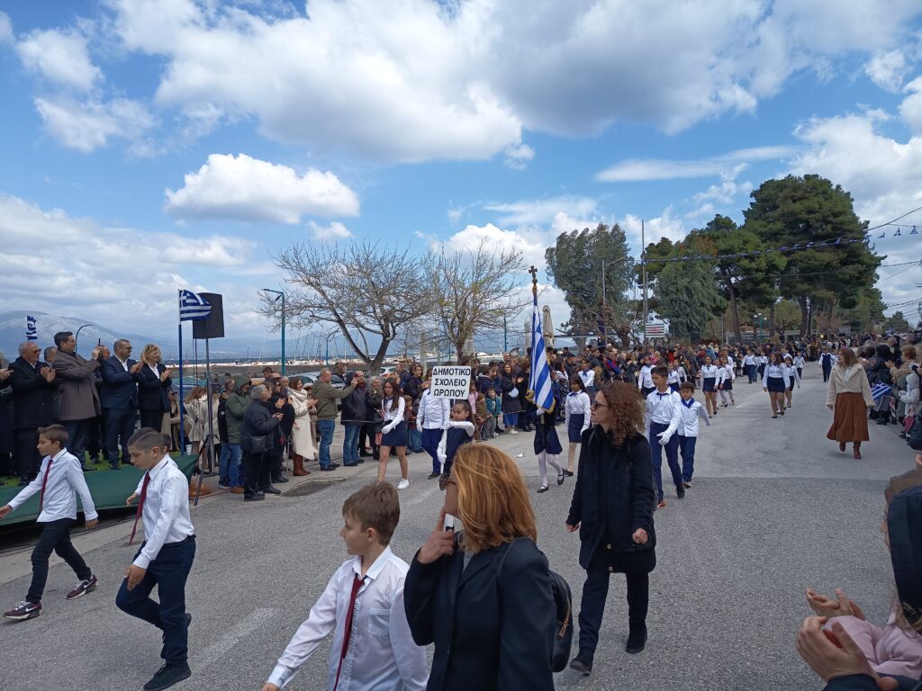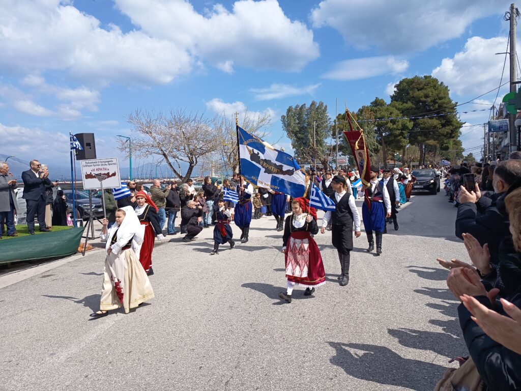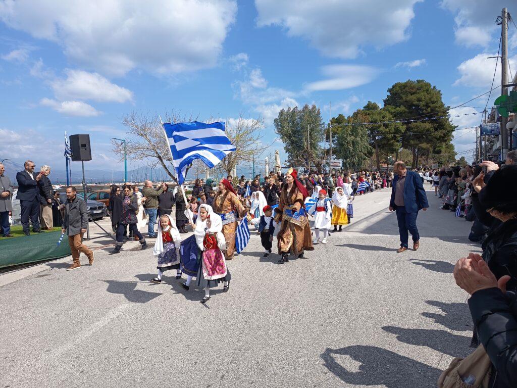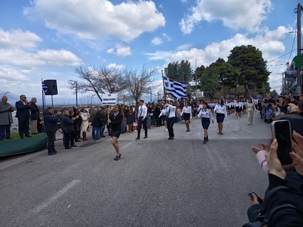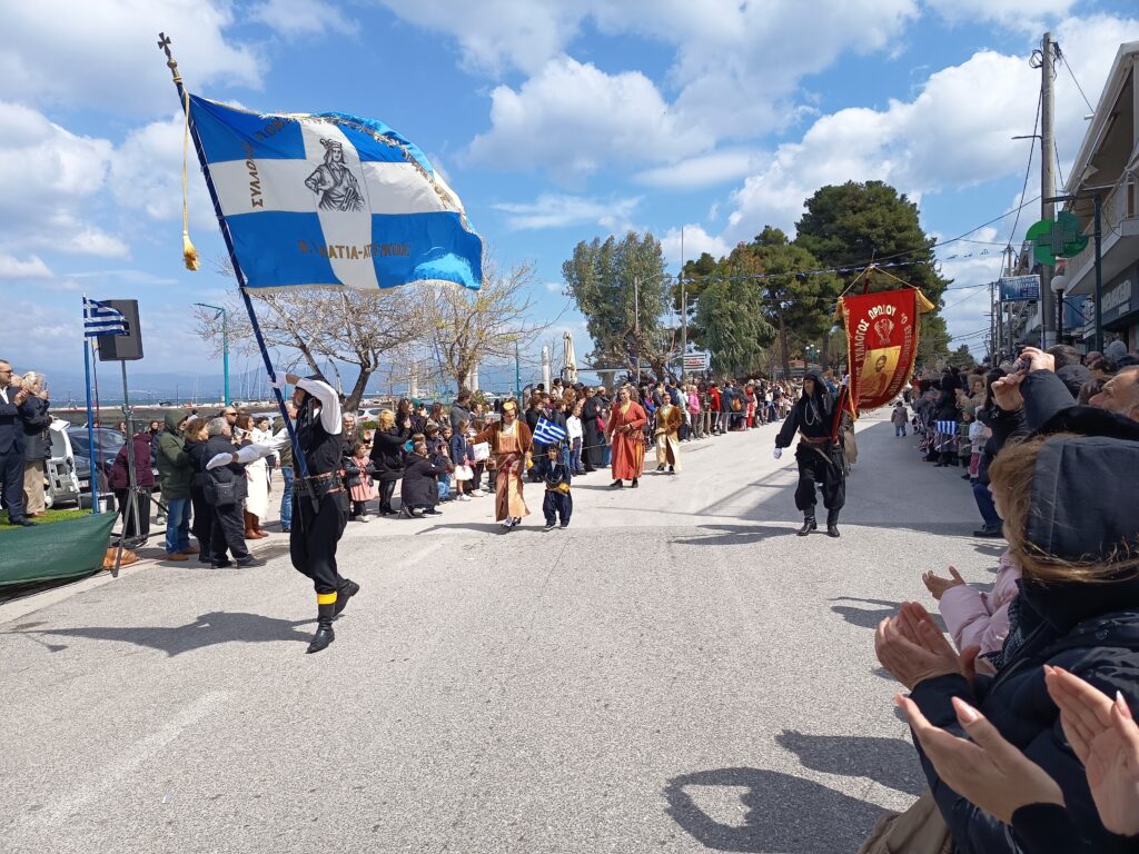 Με τους επιβλητικούς ήχους της Φιλαρμονικής του Δήμου Ωρωπού άνοιξε σήμερα η μεγάλη παρέλαση για την επέτειο της 25ης Μαρτίου στον παραλιακό δρόμο των Νέων Παλατίων.