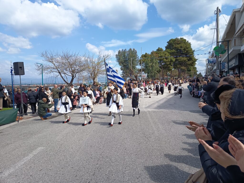 Με φόντο τον Ευβοϊκό, ο παραλιακός δρόμος των Νέων Παλατίων πλημμύρισε σήμερα από κόσμο, χρώματα και εθνική υπερηφάνεια. Η μεγάλη παρέλαση για την επέτειο της 25ης Μαρτίου ολοκληρώθηκε πριν από λίγο, αποτελώντας την κορύφωση των εορταστικών εκδηλώσεων στον Δήμο Ωρωπού.