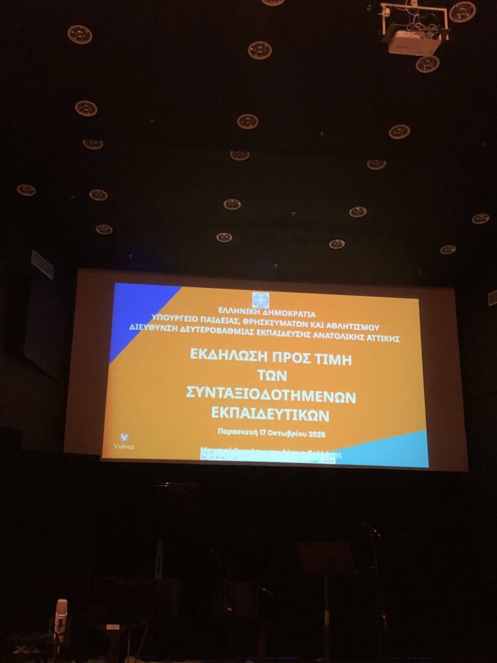 Με συγκίνηση και σεβασμό πραγματοποιήθηκε το βράδυ της Παρασκευής στο Μουσικό Σχολείο Παλλήνης μια ξεχωριστή εκδήλωση προς τιμήν των συνταξιοδοτημένων εκπαιδευτικών της Δευτεροβάθμιας Εκπαίδευσης Ανατολικής Αττικής. Η βραδιά αποτέλεσε έναν ελάχιστο φόρο τιμής σε ανθρώπους που αφιέρωσαν δεκαετίες στην υπηρεσία της γνώσης και της διαμόρφωσης των νέων γενεών.