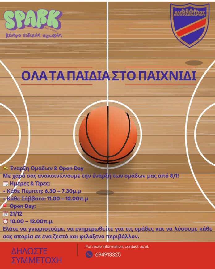 Μια αξιέπαινη πρωτοβουλία που ενώνει τον αθλητισμό με την ειδική αγωγή και την κοινωνική ενσωμάτωση ξεκινά στην περιοχή μας. Το Κέντρο Ειδικής Αγωγής «Spark» και ο Αθλητικός Πολιτιστικός Εξωραϊστικός Σύλλογος (Α.Π.Ε.Σ.) Καπανδριτίου – Πολυδενδρίου ενώνουν τις δυνάμεις τους κάτω από το σύνθημα: «Όλα τα παιδιά στο παιχνίδι».