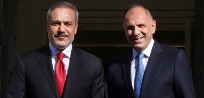 Στο περιθώριο του Συμβούλιο Εξωτερικών Υποθέσεων της Ε.Ε. που πραγματοποιήθηκε στο Λουξεμβούργο τη Δευτέρα, ο Έλληνας υπουργός Εξωτερικών, Γιώργος Γεραπετρίτης, συναντήθηκε με τον Τούρκο ομόλογό του, Χακάν Φιντάν. Κατά τη διάρκεια της διμερούς επαφής, ο κ. Γεραπετρίτης επανέλαβε τις ελληνικές θέσεις, ξεκαθαρίζοντας ότι η οριοθέτηση της ΑΟΖ και της υφαλοκρηπίδας αποτελεί «τη μία και μόνη διαφορά» ανάμεσα στην Ελλάδα και την Τουρκία, ενώ τα ζητήματα κυριαρχίας δεν τίθενται σε διαπραγμάτευση.